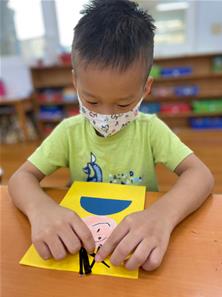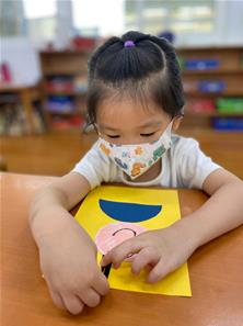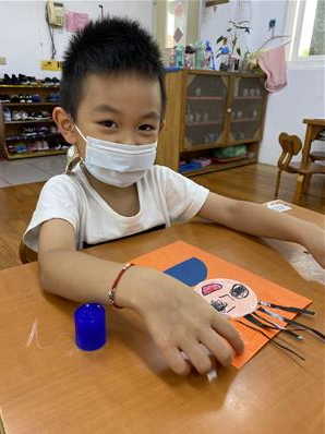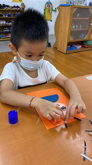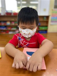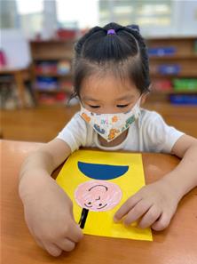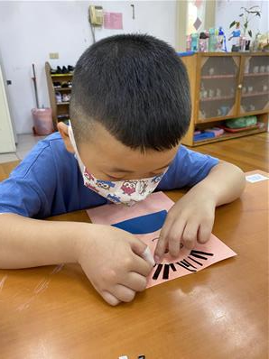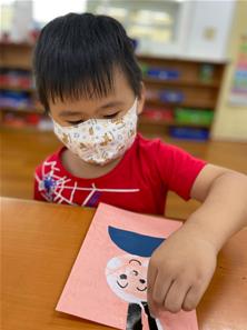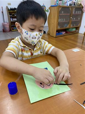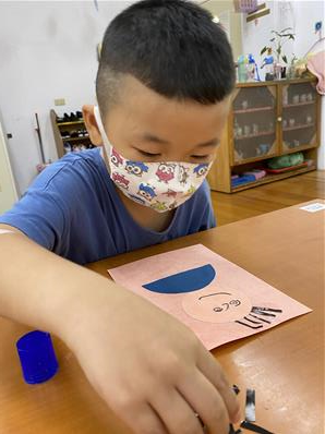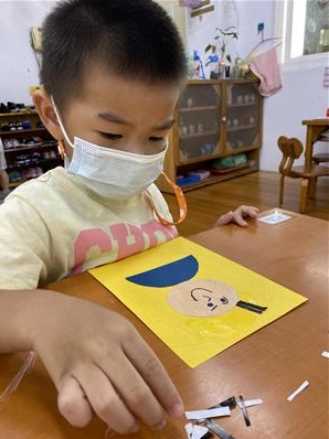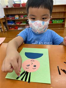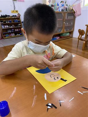 幫爸爸貼頭髮囉~