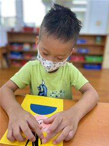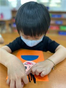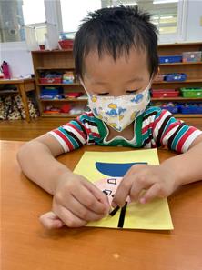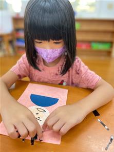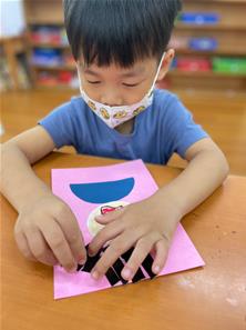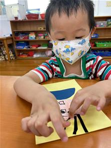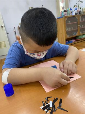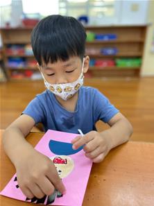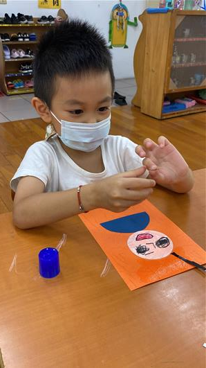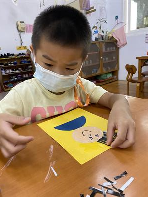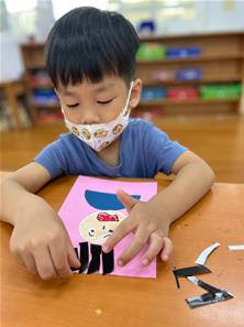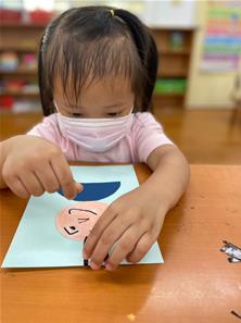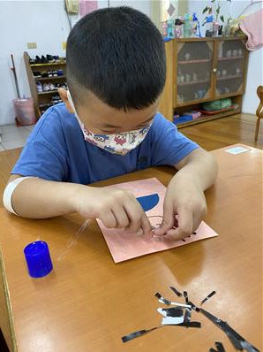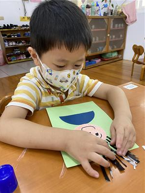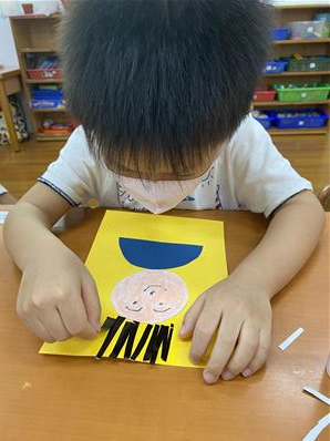 幫爸爸貼頭髮囉~
