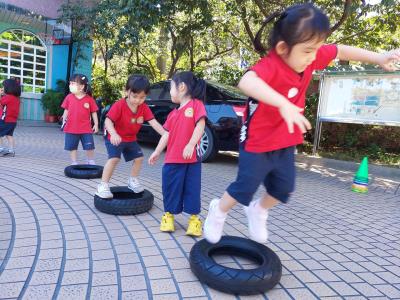 114.8.26大肌肉活動~踩輪胎保持平衡